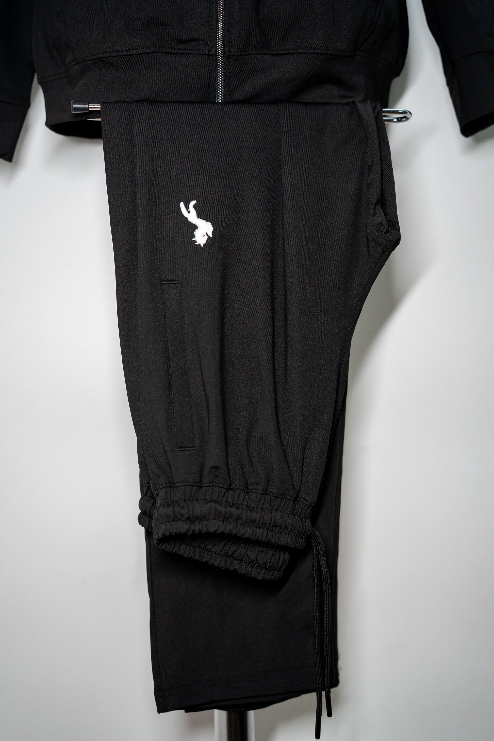 Logo stilizat alb pe piept și coapsă, ce adaugă un accent vizual discret.